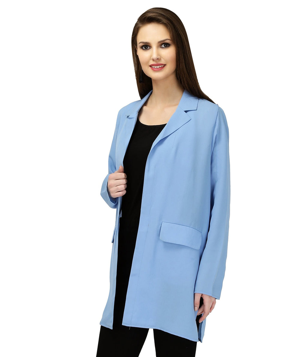 Light blue full sleeves long formal jacket with two pockets. Suitable for a formal look and a chic classy casual look.