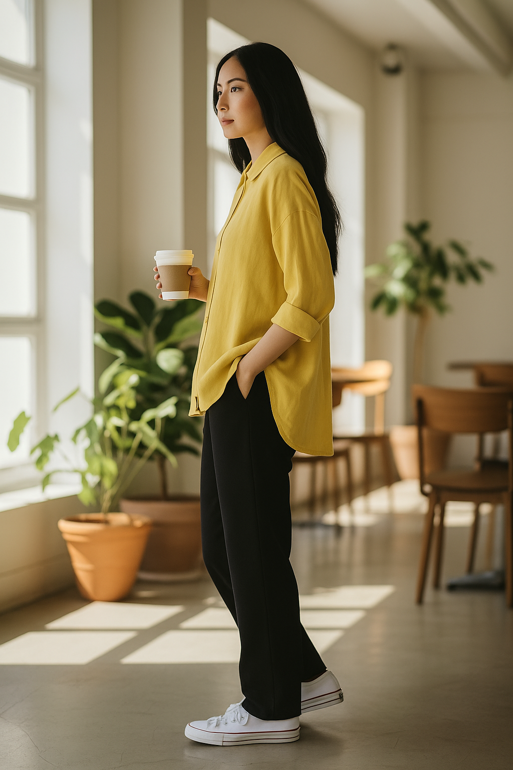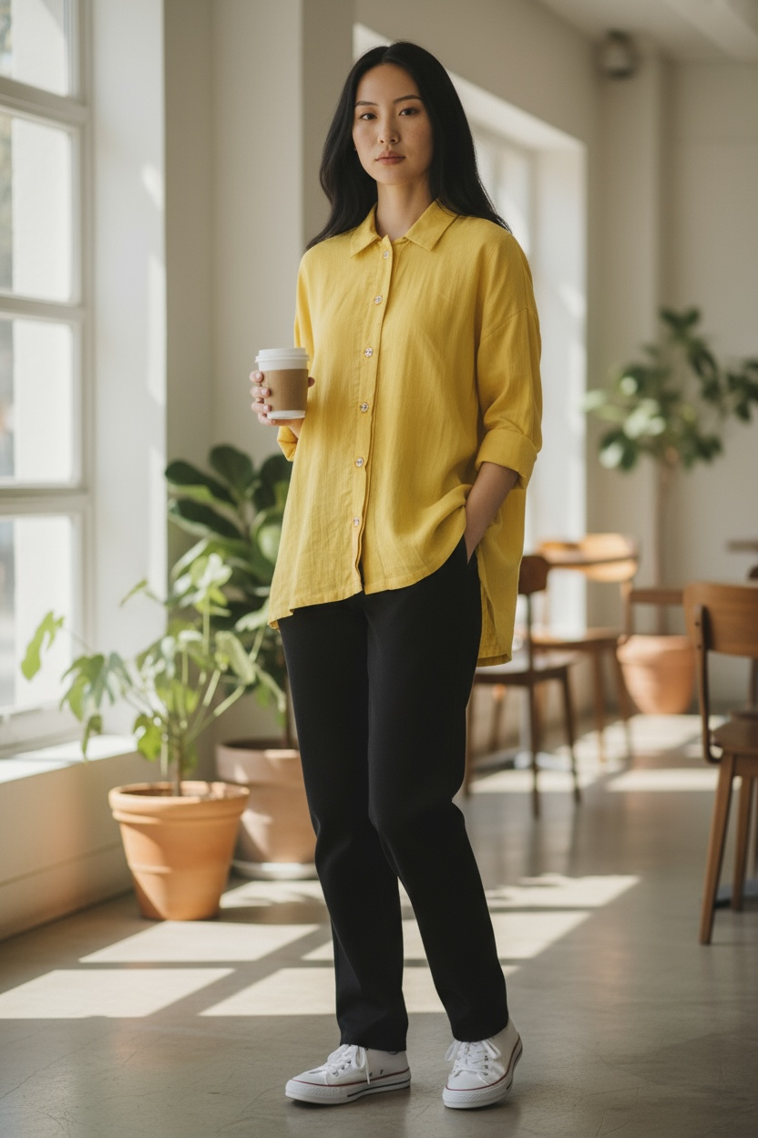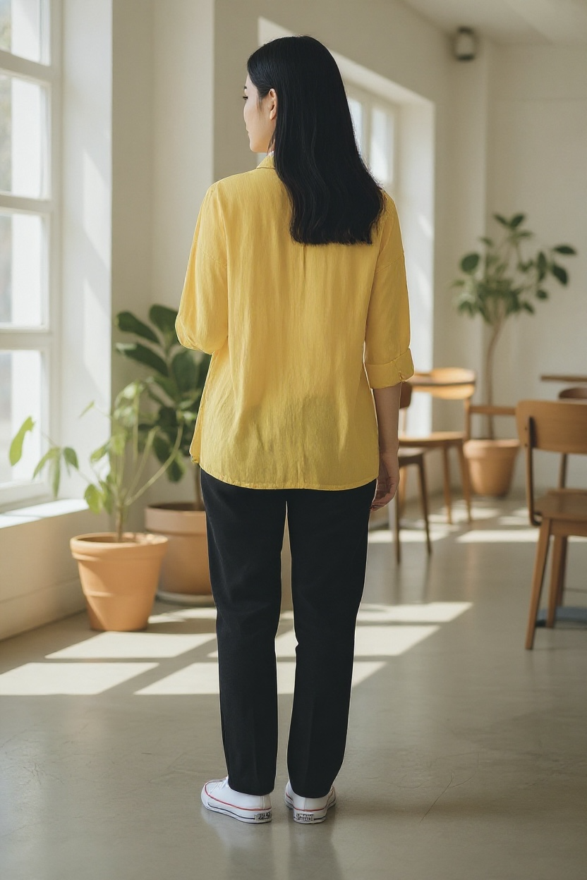 Brighten your everyday look with the Cute Catty Shirt — a cheerful and breathable everyday shirt designed in a bright, mood-lifting yellow that brings instant freshness to your look. Made from cotton fabric this relaxed-fit shirt with 3/4 sleeves drapes beautifully and keeps you comfortable from morning to evening. The highlight of the piece is its adorable cat embroidery on the placket, adding a playful twist that makes the shirt truly stand out. Perfect for work, brunch, or a casual day out, this shirt blends charm and comfort effortlessly.